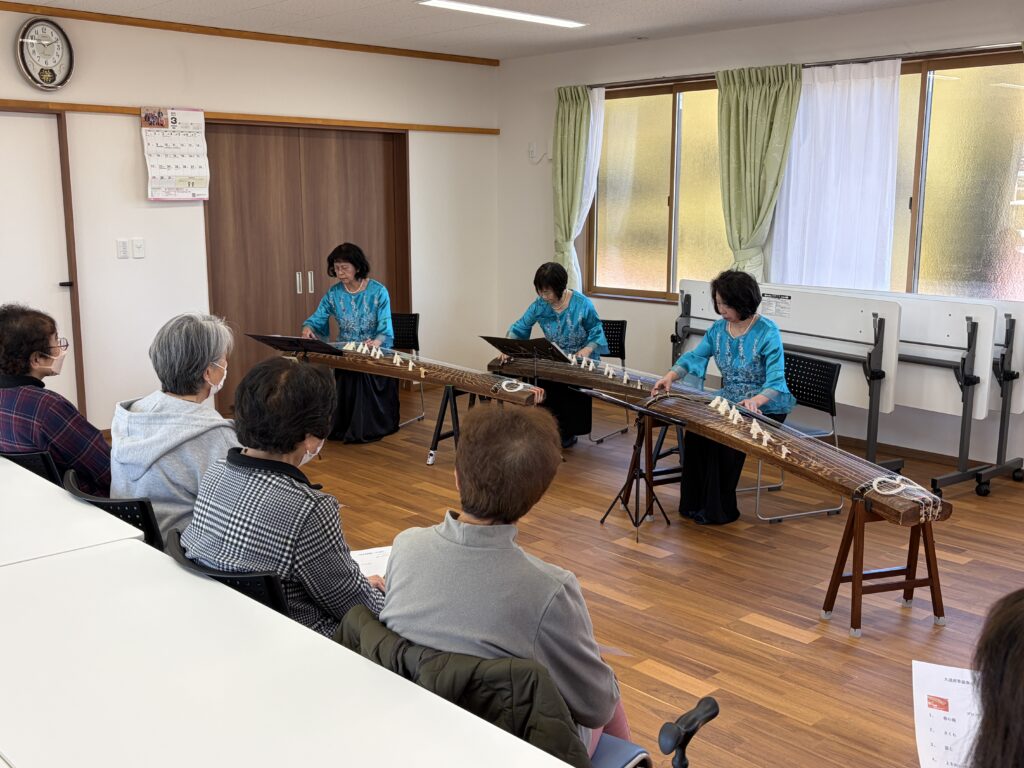 令和8年3月12日(木)、吉田地区で活き生き長生き教室が開催され、大道派色麻教室のみなさんによる、琴の演奏会が行われました。