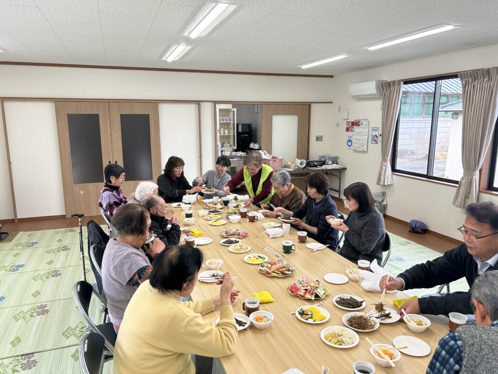 体を動かした後は、お茶のみ会が開催されました。 久しぶりの団らんのひとときとなり、参加者からは「コロナ禍でお茶のみができなかったけれど、今日は食べながら、飲みながらおしゃべりできて良かった。」「自分の漬物を皆に食べてもらえて嬉しい」といった喜びの声が聞かれました。
