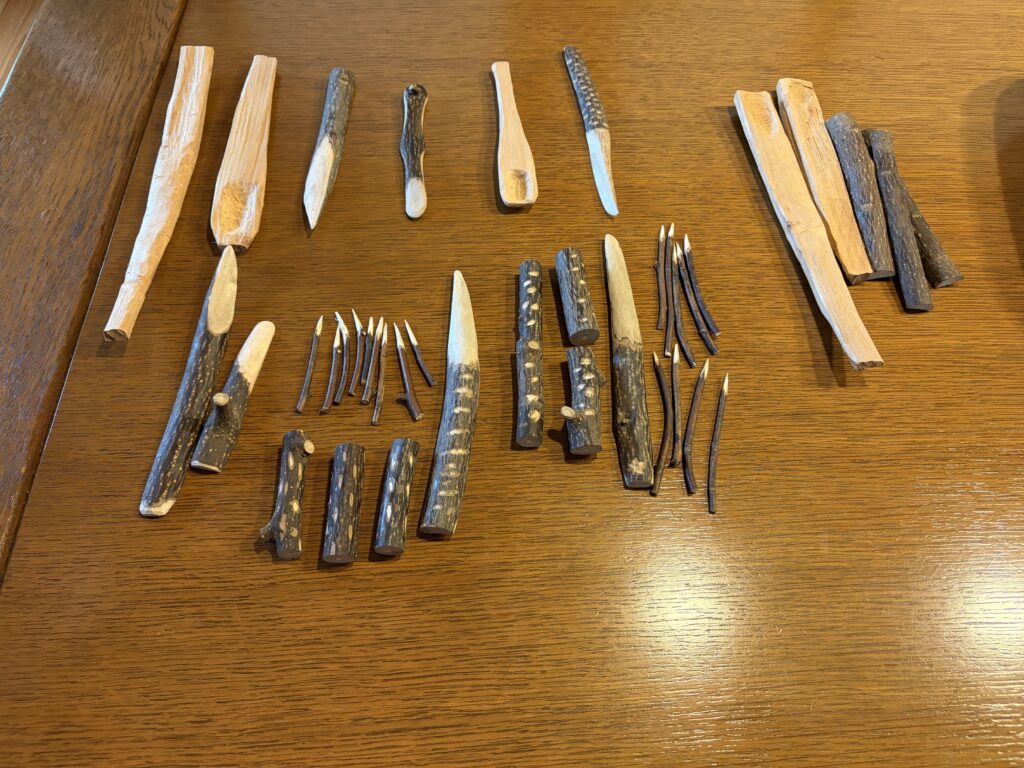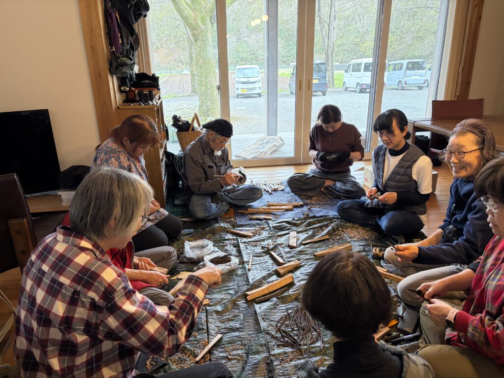 午後は、桜の木を使ったスプーンやへらづくり、クロモジを使った楊枝づくりに挑戦。「クロモジは良い香りがするんだよ」「やすりをかけるとすべすべで気持ち良いね」「みんなで作るのは楽しいね」「生活の中で使っていきたい」など、参加者同士で作品を見せ合いながら笑顔が広がり、貴重な体験となったようです。